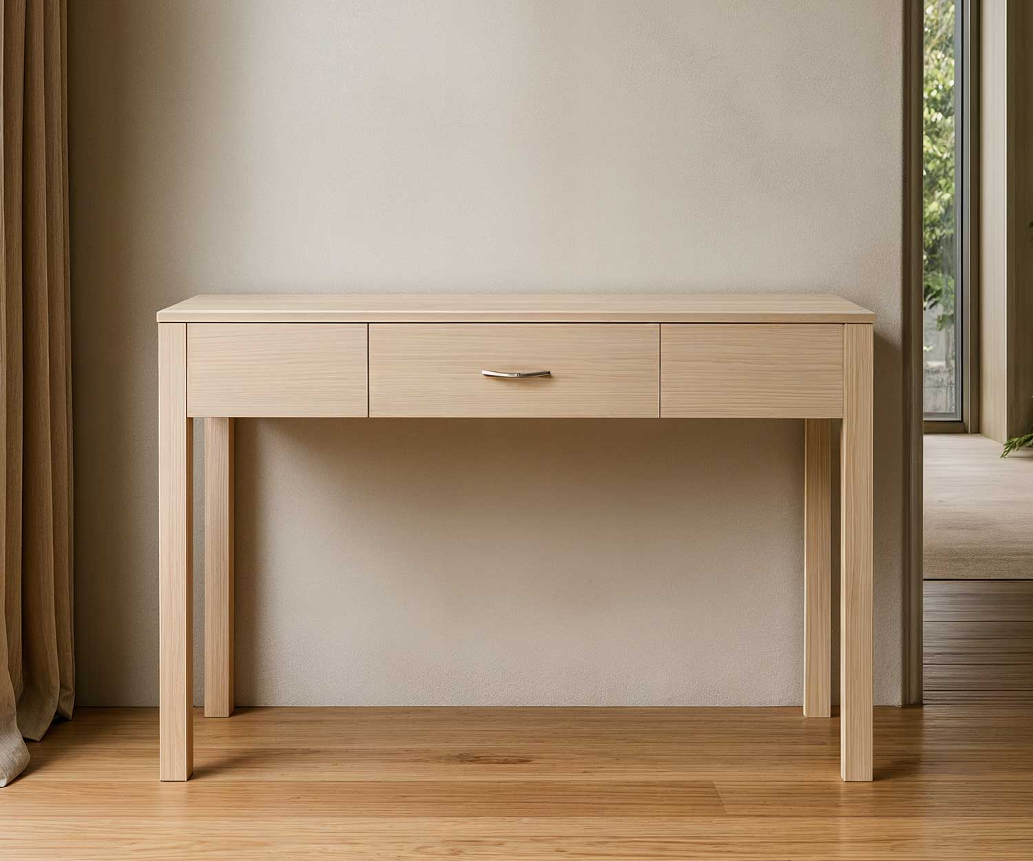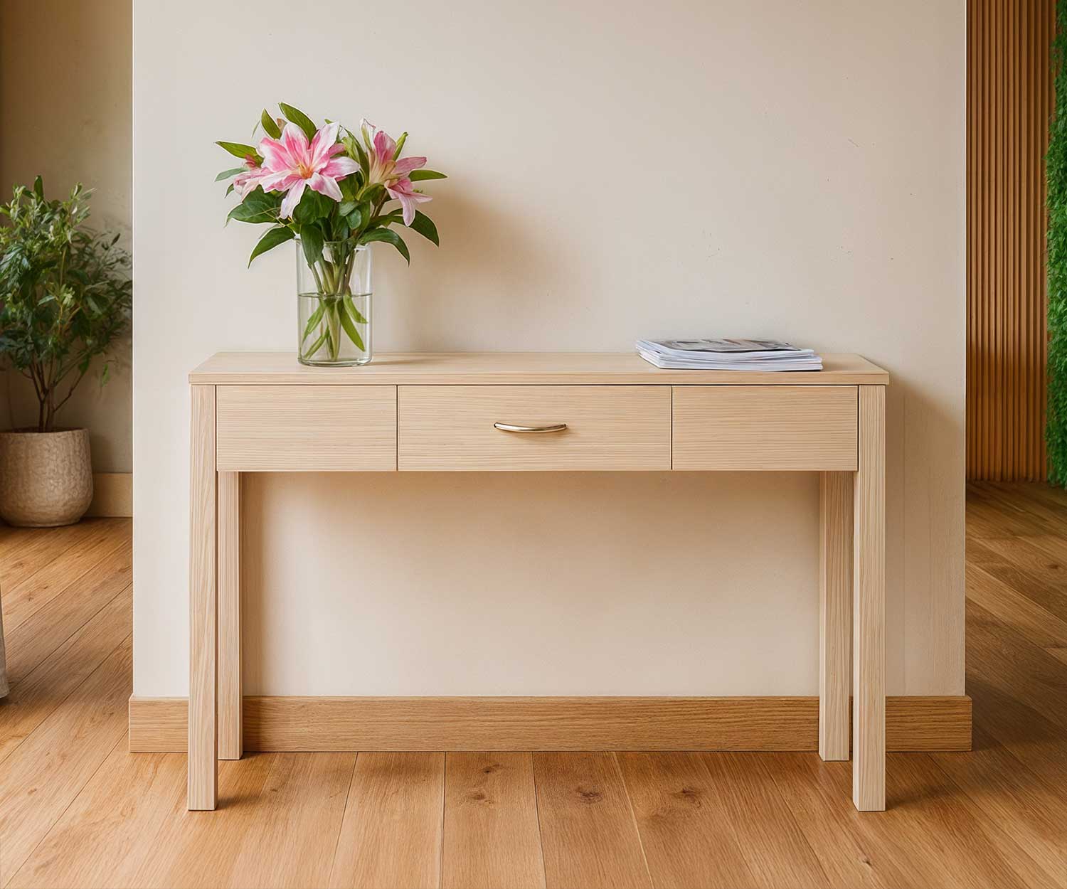 The Allison Console Table combines classic style with practical design, making it a versatile addition to any hallway, entrance, or living space. Its slimline profile ensures it fits neatly without overwhelming the room, while the central drawer provides discreet storage for everyday essentials such as keys, remotes, or stationery.