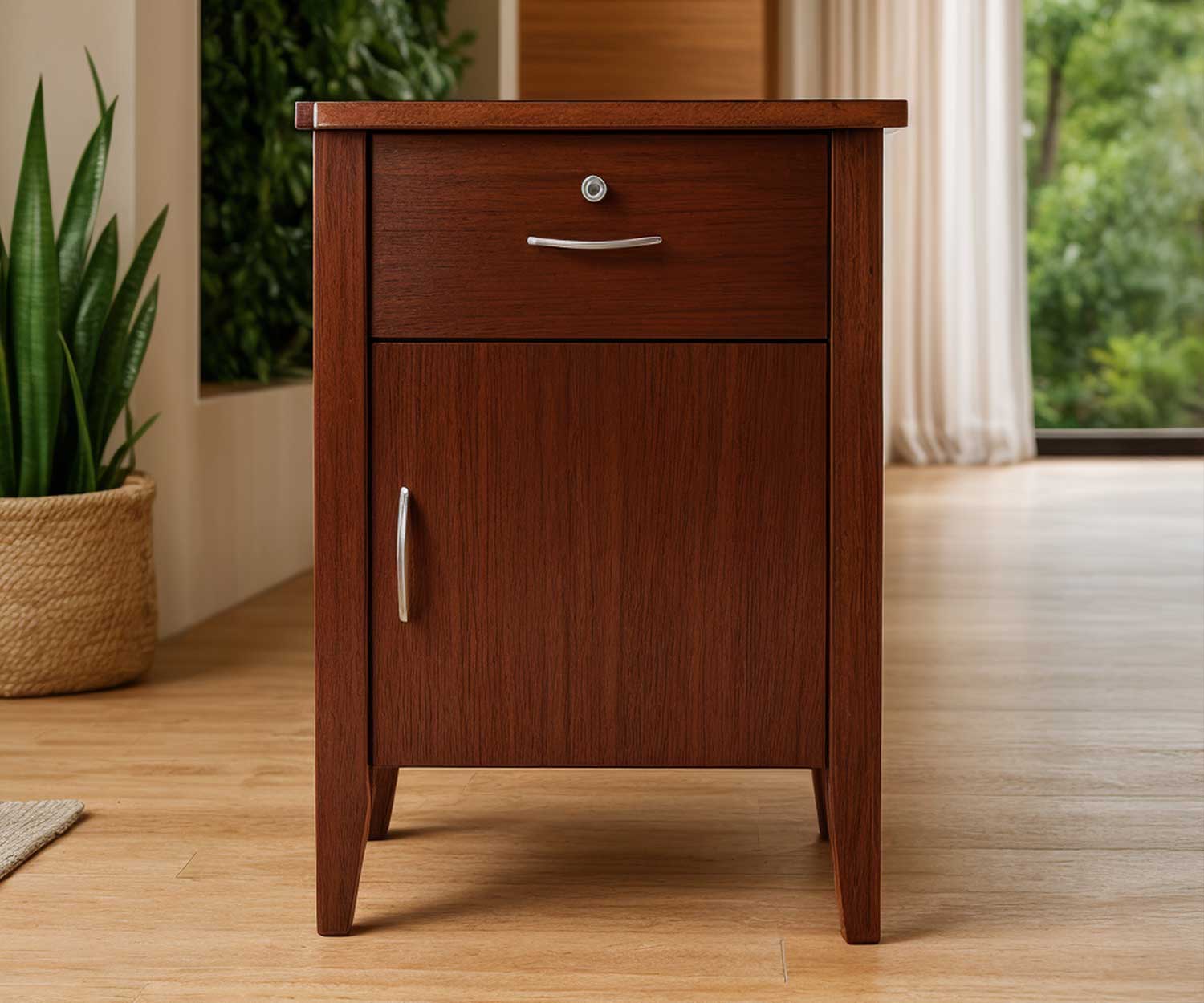 - Solid timber bedside unit nightstand with 1 drawer and a cupboard