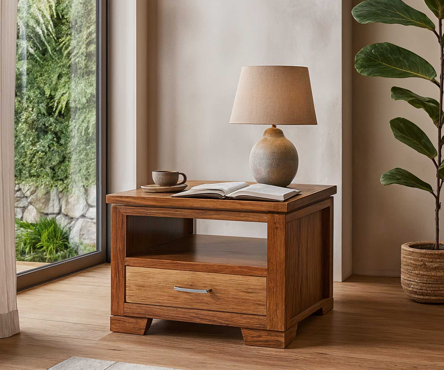 Our timber side tables are essential as a lounge-side companion or as the perfect place for a lamp, book, or mug of tea, adding comfort and home-like style to any aged care or hotel living space. This sturdy, yet timeless Havana Lamp Side Table is handcrafted in our Brisbane workshop from Tasmanian Blackwood Timber. It can be polished to your requirements. Custom sizes are available.