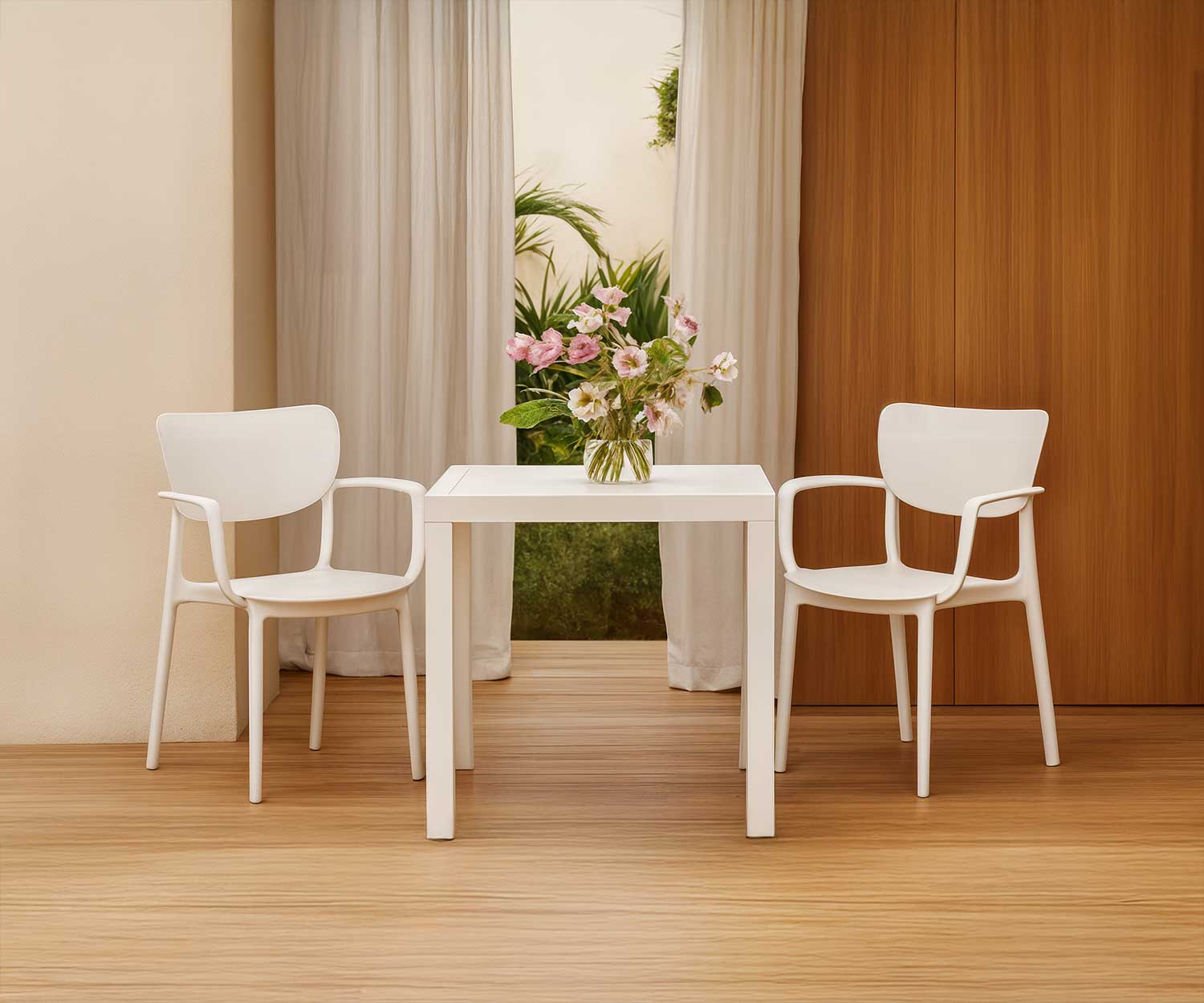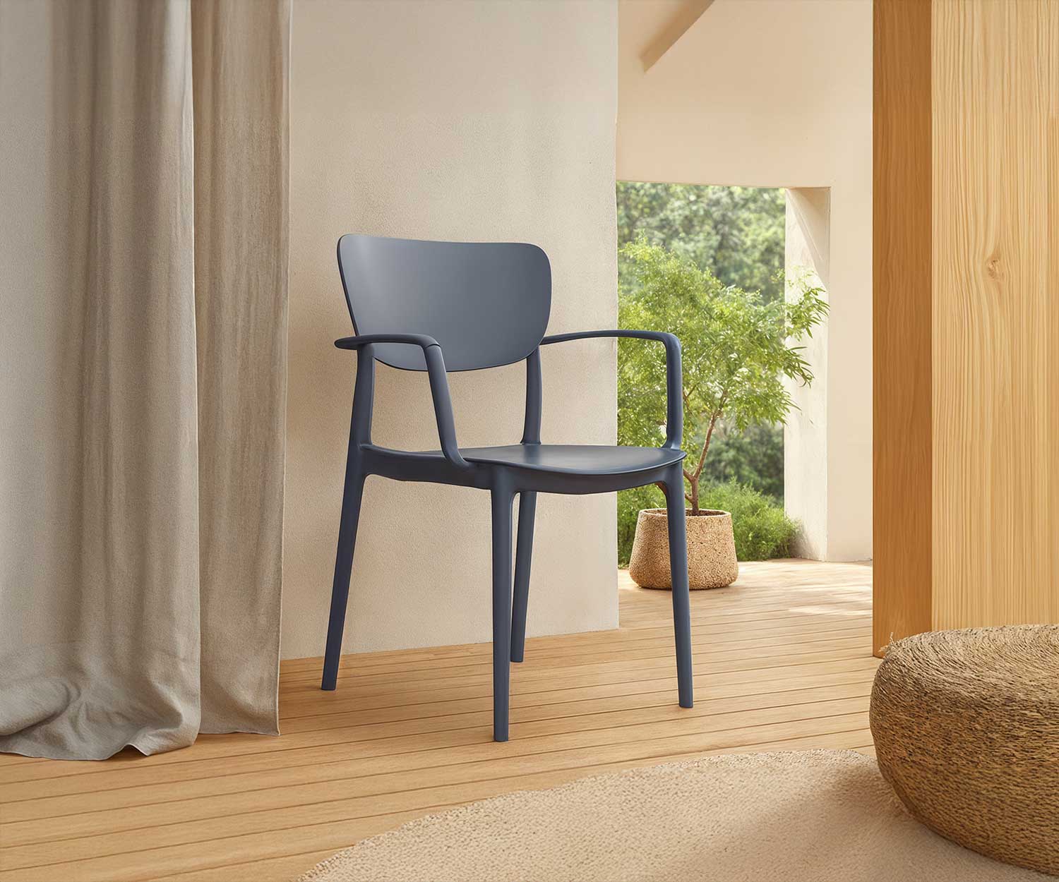 The Lisa Outdoor Armchair is a perfect blend of durability and style. Made in Europe with high-quality polypropylene, these chairs are reinforced with fiber glass and UV stabilised, ensuring that they will not fade.