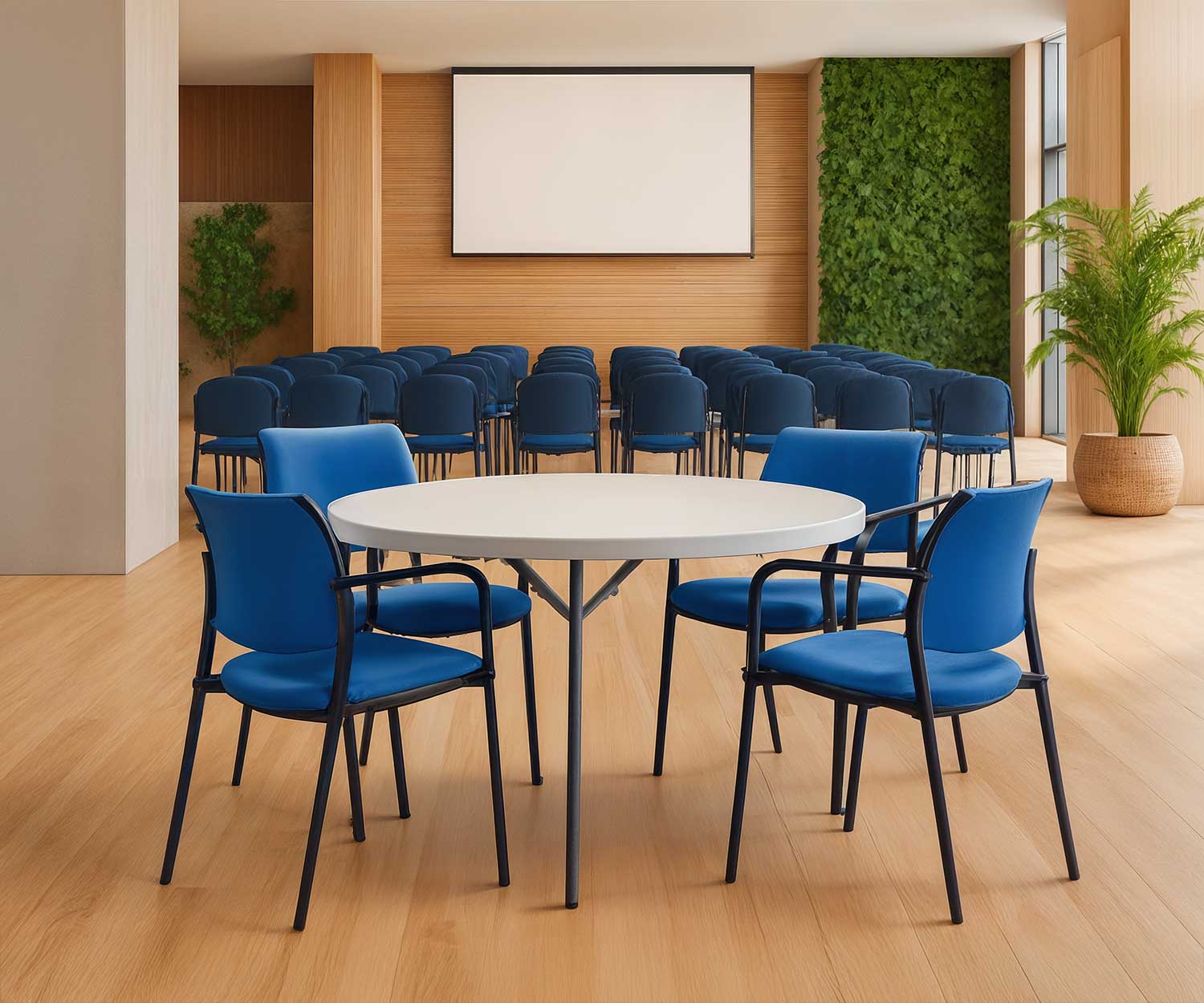 This commercial-grade table is designed for maximum hygiene with its high-density polyethylene blow moulded white top that’s easy to clean and maintain. The table top is a one-piece mould that is 50mm thick, providing a sturdy and stable surface for your guests. The powder-coated steel frame ensures that the table is robust and can withstand frequent use. The overall table dimensions are 1520Dia.x740H, making it ideal for large gatherings and events.