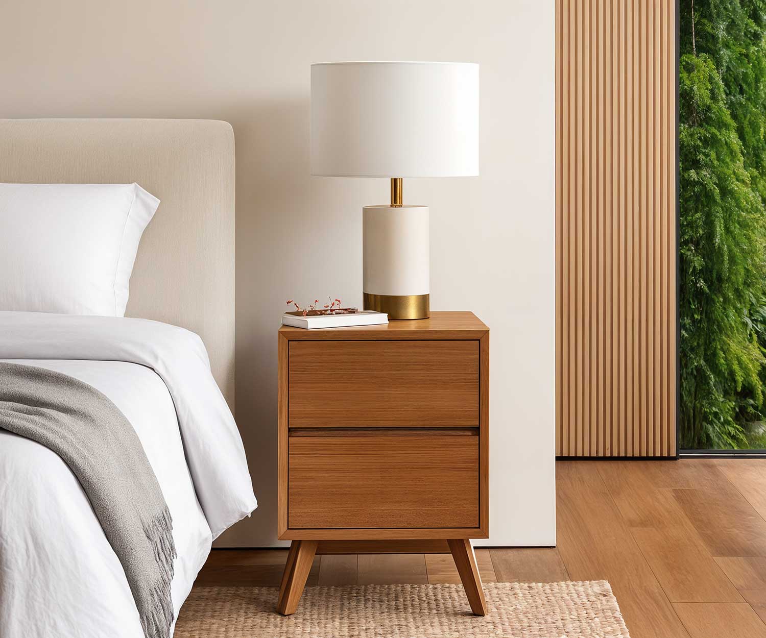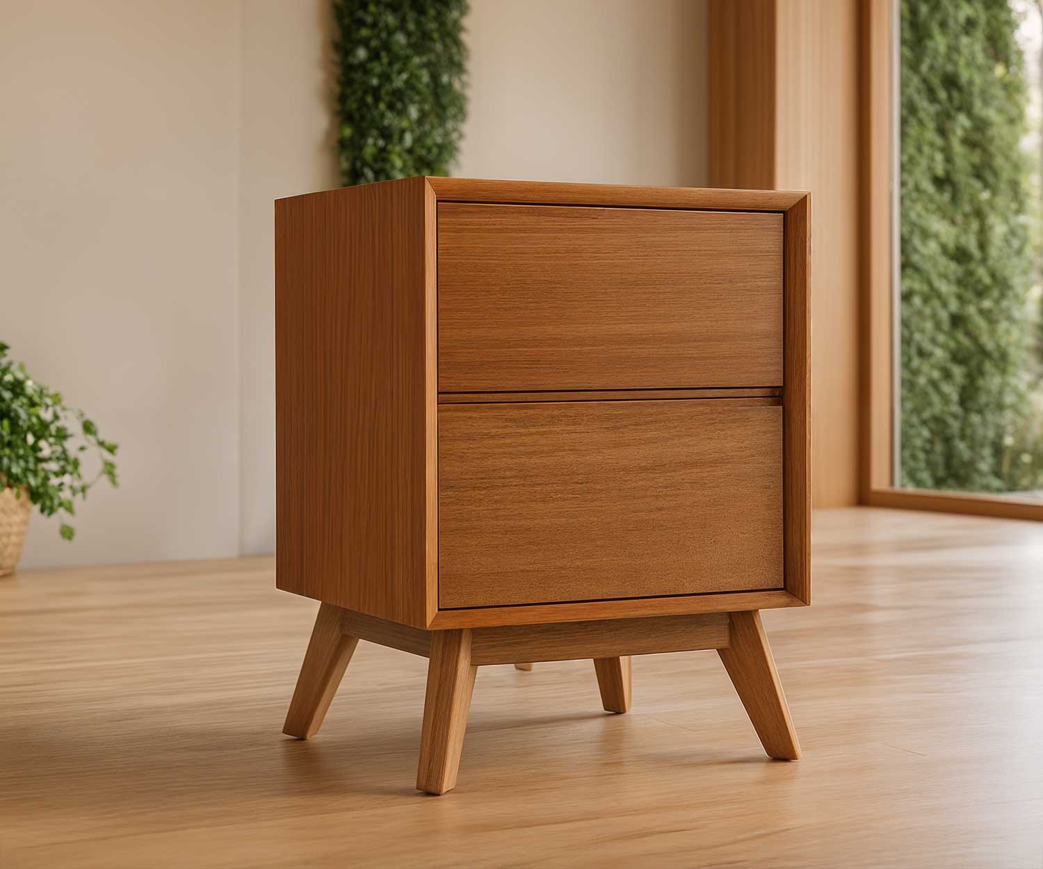 - Solid timber bedside unit nightstand with 2 drawers