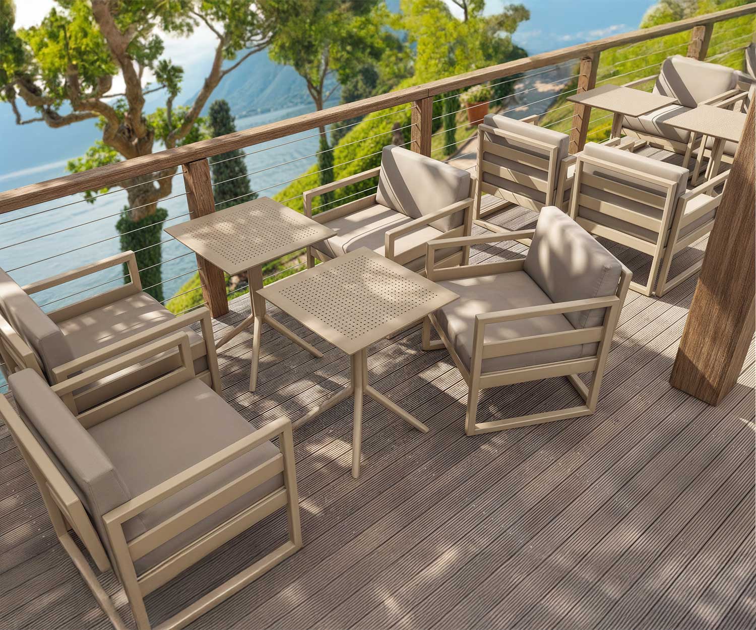The Mykonos Outdoor Lounge Armchairs are a must-have for any commercial space looking to add style, comfort, and durability to their seating options. Made in Europe with high quality polypropylene reinforced with fibre glass, these chairs are built to last.