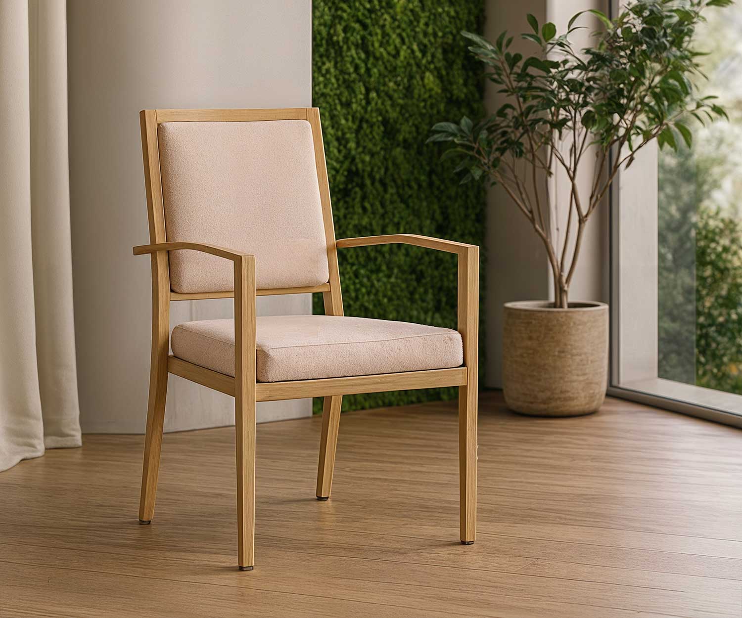 The North Dining Armchair combines strength, comfort, and modern style—perfect for dining spaces in health, aged care, and retirement living. Crafted with a durable aluminium frame, this chair offers long-lasting performance while remaining lightweight and easy to move.