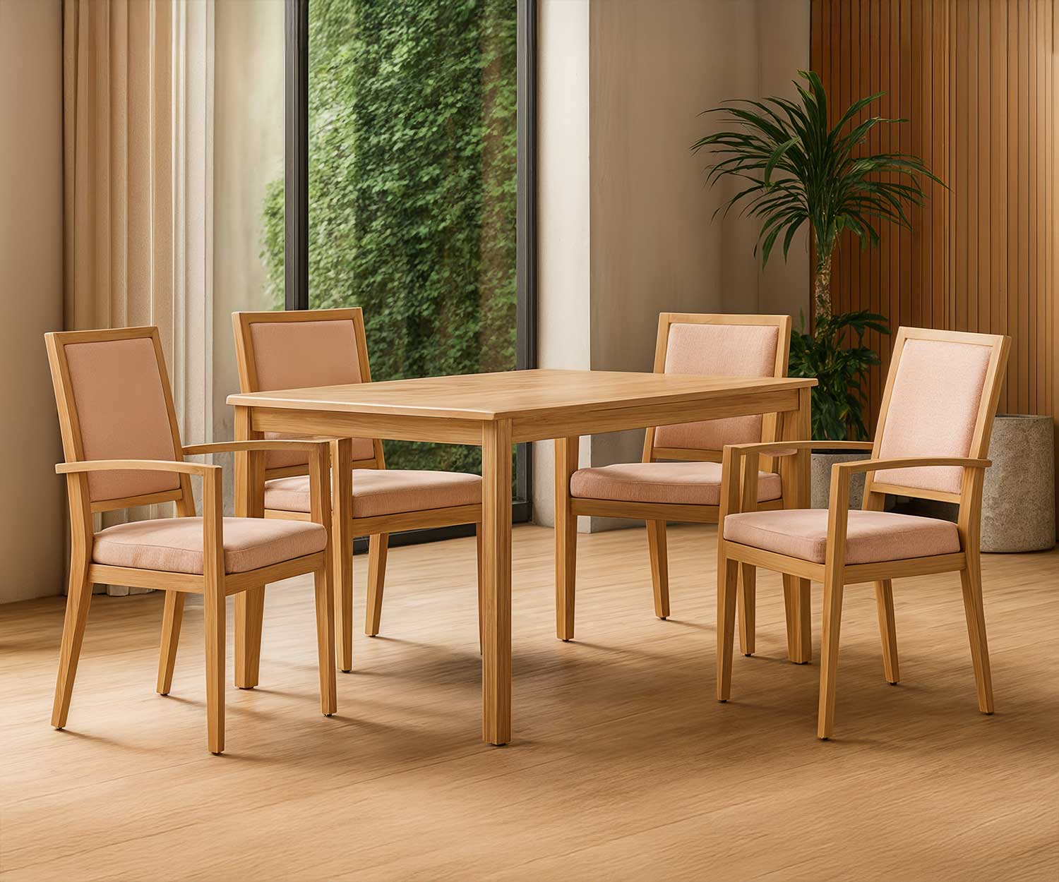 Designed with supportive arms to assist with sit-to-stand movements, the North Dining Armchair promotes both independence and comfort for residents. Upholstery is fully customisable, with your choice of fabric to suit your interior design and create a warm, welcoming atmosphere.