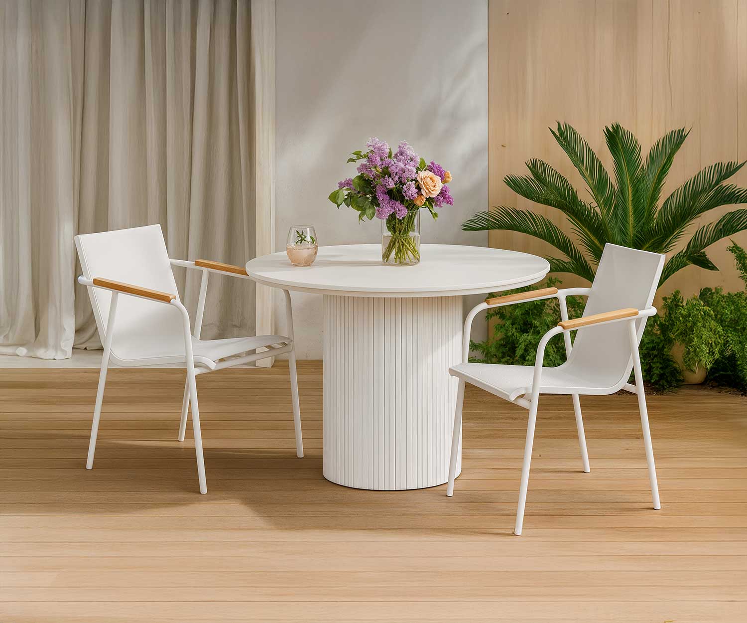 The Murano Fluted Round Dining Table is a refined statement piece that balances contemporary design with commercial-grade performance. Defined by its sculptural fluted column base and smooth sintered stone tabletop, Murano brings depth, texture and architectural interest to dining spaces. The softly curved profile and seamless edges deliver a clean, modern aesthetic that feels considered and distinctive.