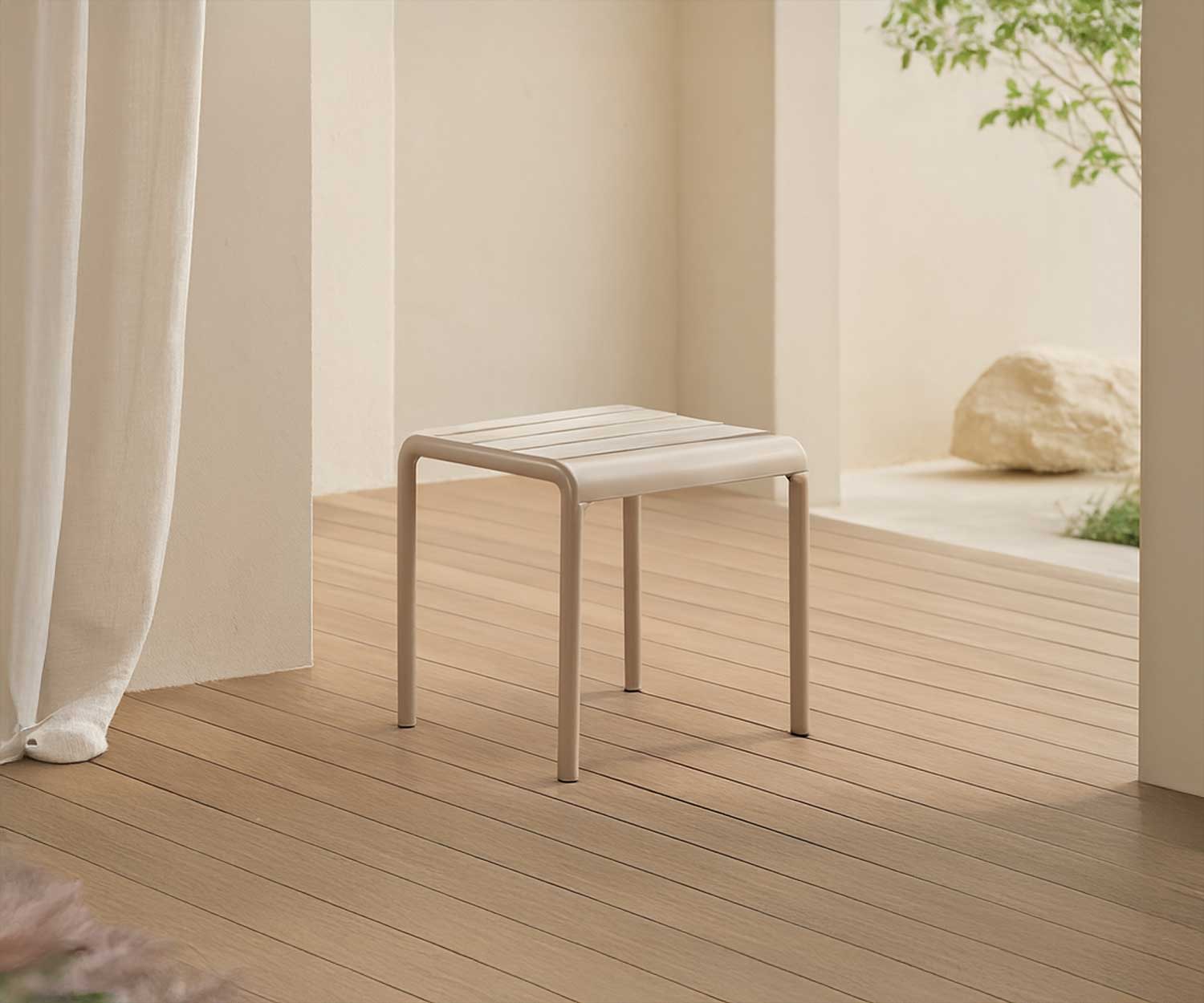 Available in an array of sophisticated colors including Black, Anthracite, Olive Green, Taupe, White, and Marsala, the Paris Side Outdoor Table allows you to coordinate seamlessly with your existing decor. Designed with sustainability in mind, it is fully recyclable at the end of its lifecycle and comes with replaceable feet for added stability on any surface.