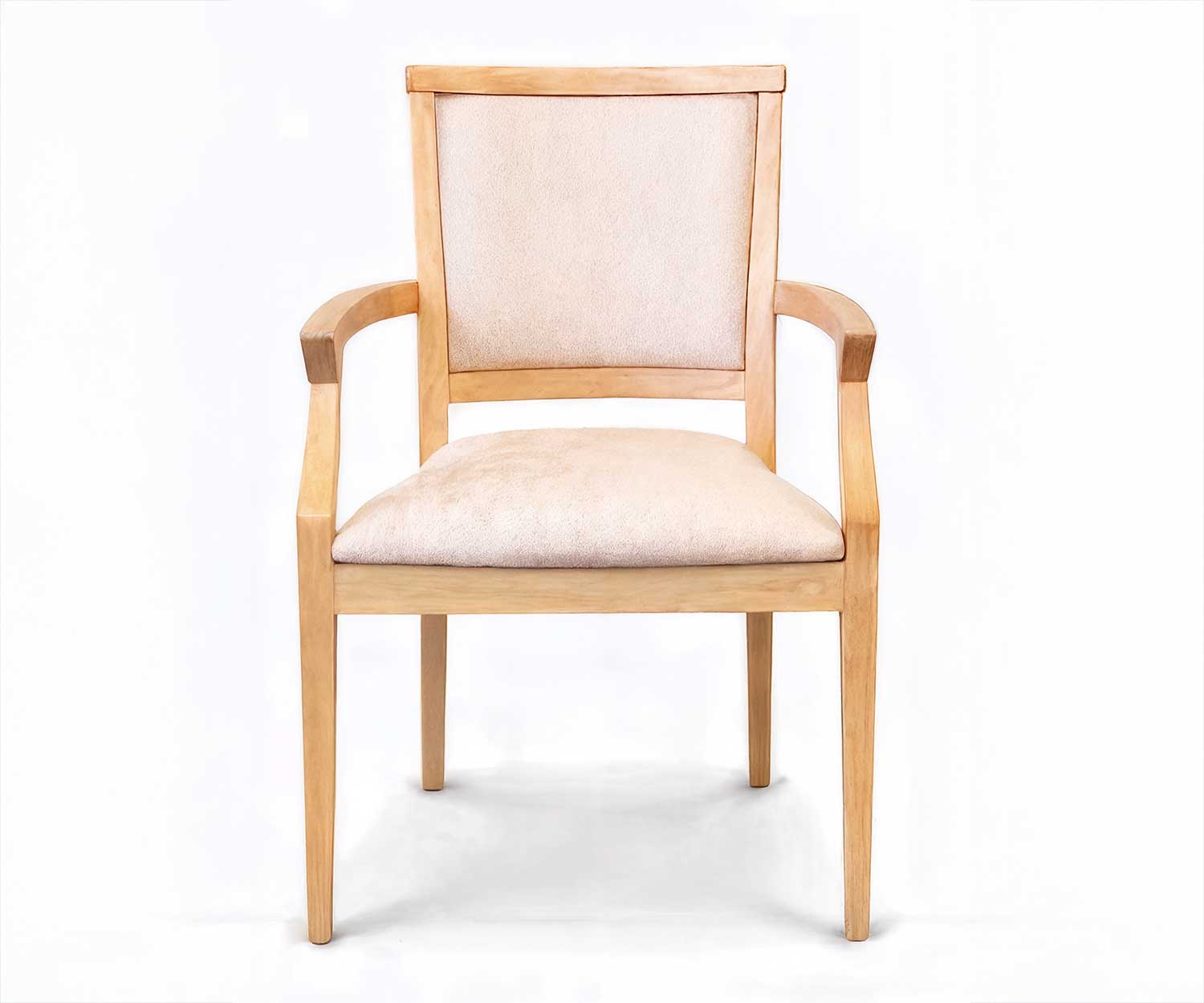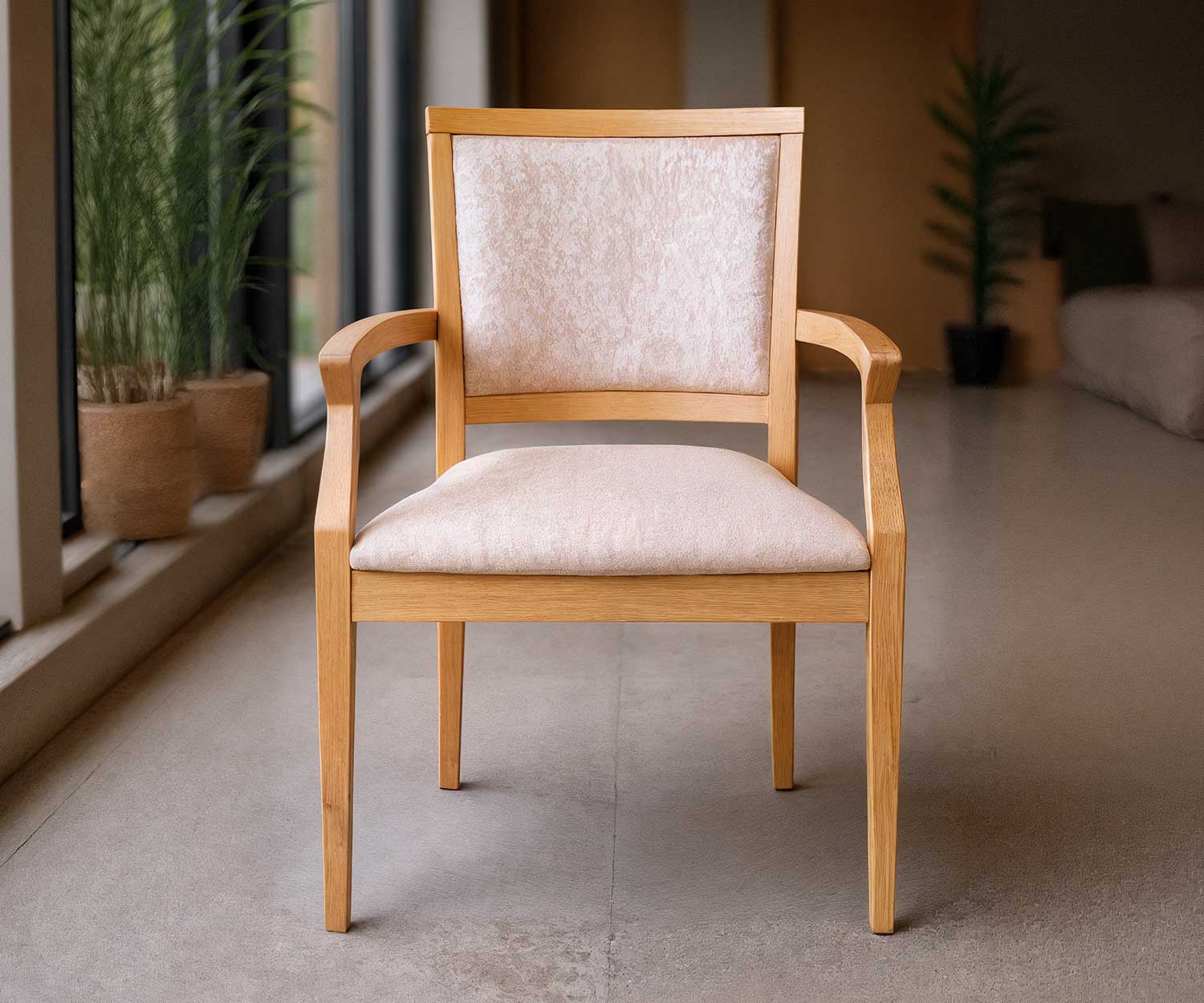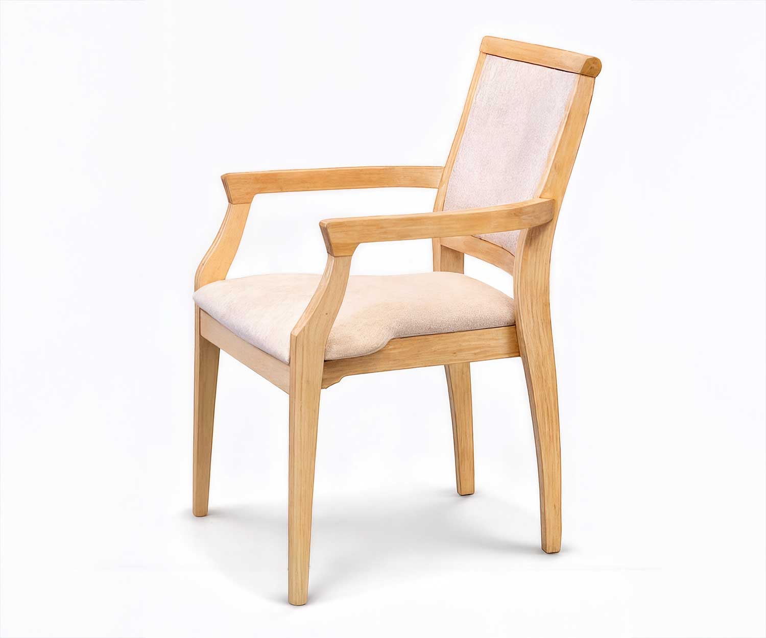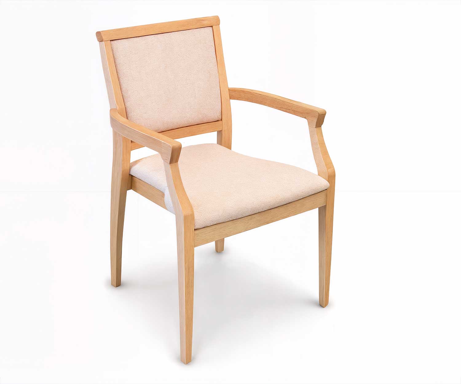 The Rosetta Dining Room Armchair is a timber dining chair manufactured from European Beech Timber. This dining chair features an upholstered seat and back. We have a huge range of upholstery fabrics to choose from and the chair’s timber frame and legs can be polished to suit any client furniture project. This timber dining chair is perfect for the aged care or retirement living setting because it is sturdy and has armrests with sufficient grip, assisting elderly residents with sit-to-stand transitions.