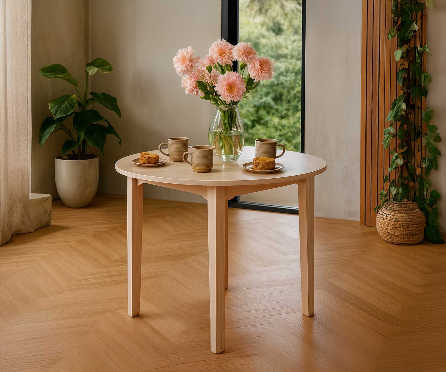 The Signature Round Dining Table combines timeless design with practical functionality, making it a versatile centerpiece for any dining space. Its simple, classic lines bring understated elegance, while providing ample space for meals, card games, or casual conversation. Perfectly balancing form and function, this table encourages social interaction and comfortable dining experiences.