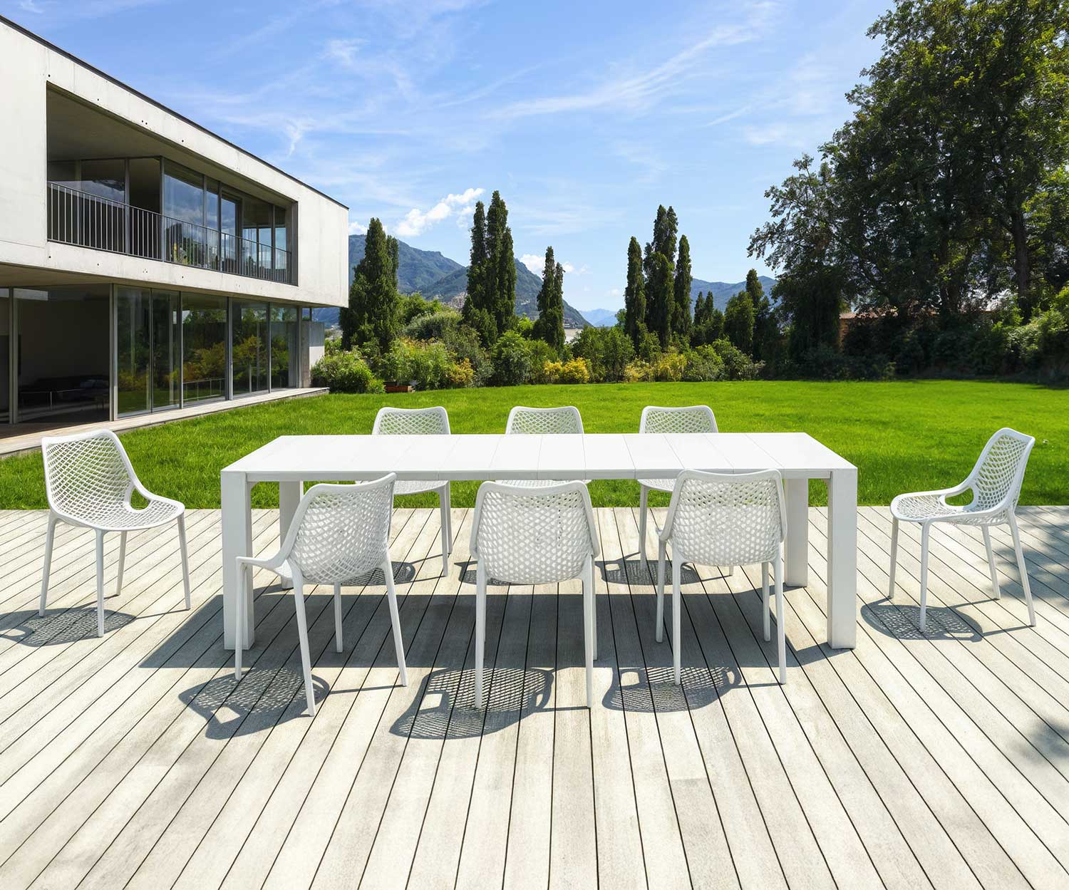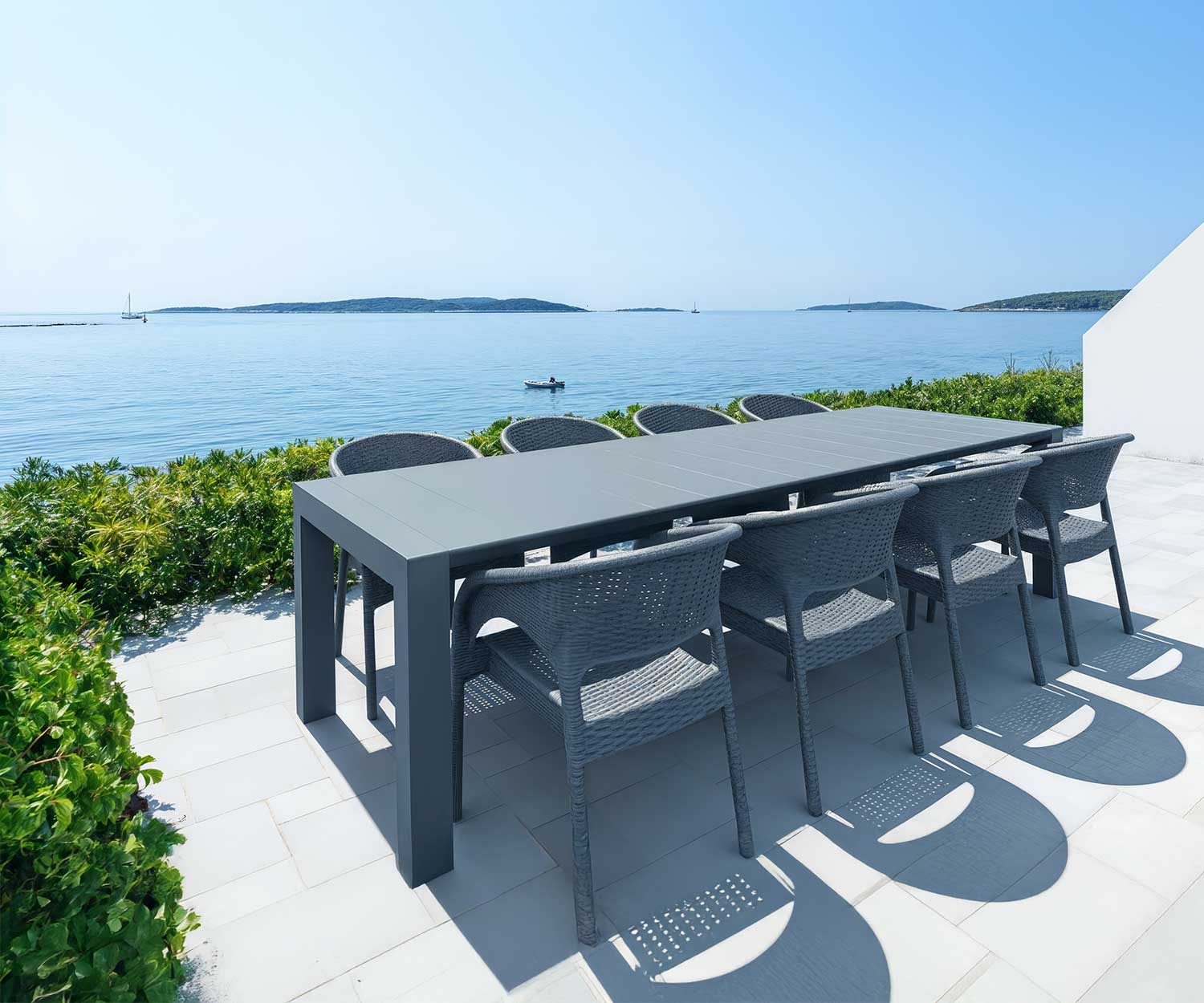 The Vegas Outdoor Expandable Table 260/300 is an excellent addition to any commercial space. It’s made in Europe with high-quality materials, offers an elegant design, and is perfect for indoor and shaded outdoor use.