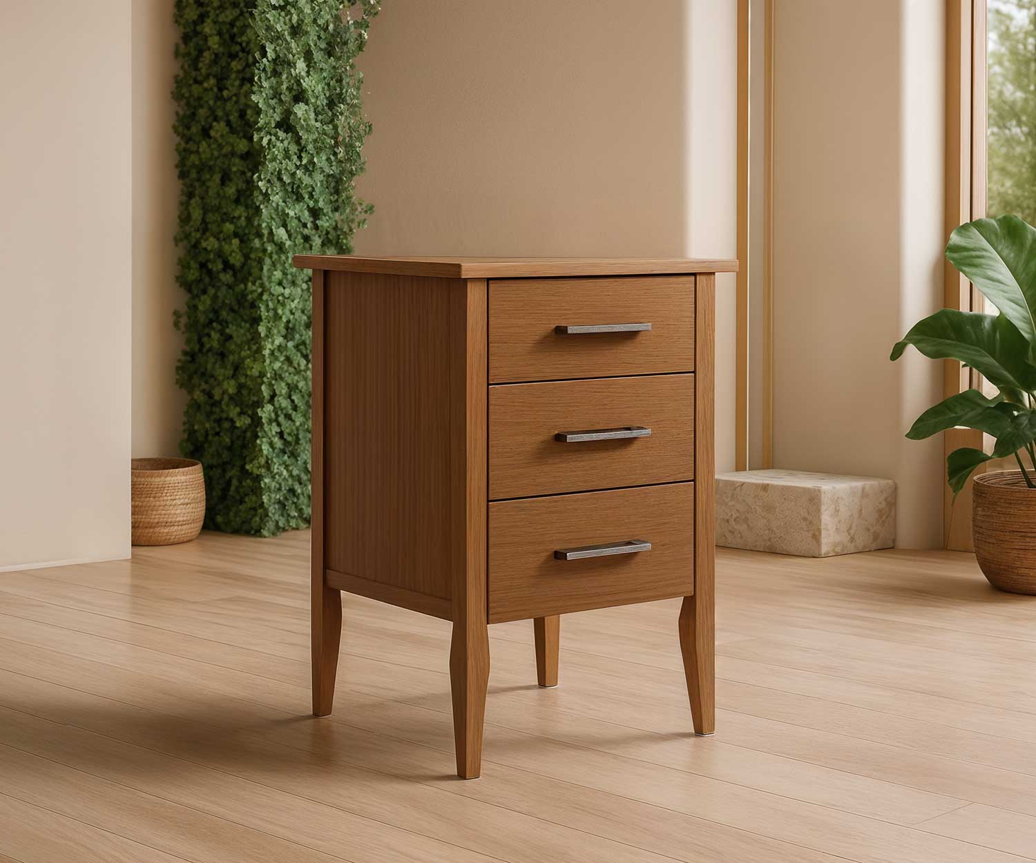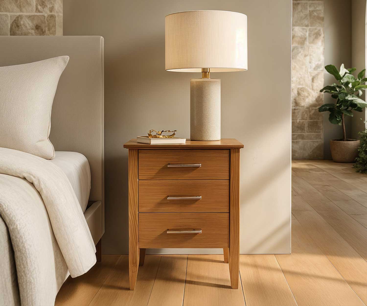 - Solid timber bedside unit nightstand with 3 drawers